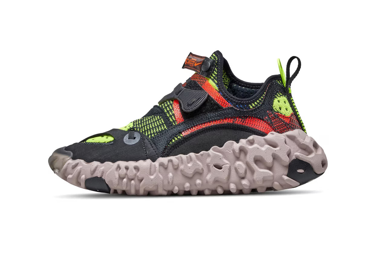 ДНК Overreact также копируется для Overreact Sandal. Этот гибридный стиль смешивает видимые и скрытые слои на его сложенной верхней части для легкого прилегания, в то время как промежуточная пена React использует абстрактный рисунок протектора для поддержки импровизированных систем тяги. Эти вещи объединяются, чтобы создать самый летний стиль коллекции, похожий на футуристический проект Nike ACG.