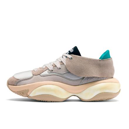 Представленный как единственный черный вариант Cell Alien в футуристическом обрамлении, остался почти нетронутым за исключением патча с логотипом «RHUDE» на языке. Подошва состоит из амортизирующей части ментолового зеленого цвета и состаренного желтого мидсола.